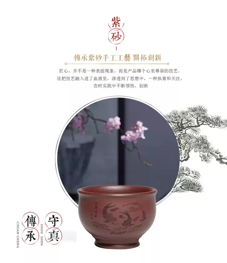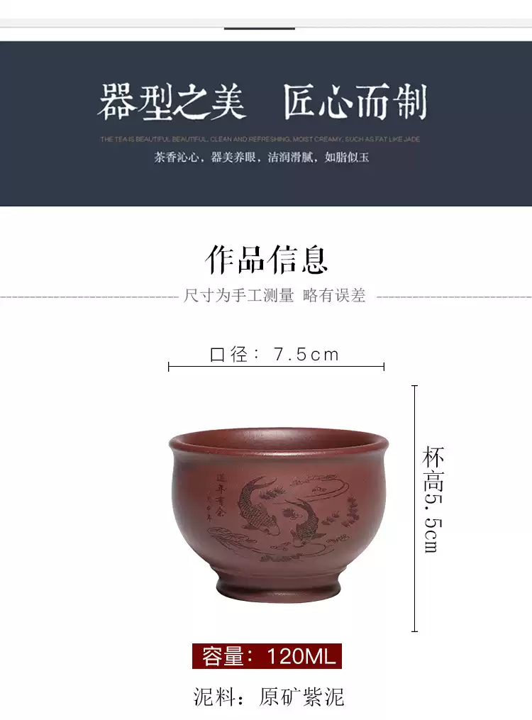 zisha (a type of sand made from purple sandstone)Quick Cup, preferred raw clay material, through the traditionalzisha (a type of sand made from purple sandstone)Crafted. The vessel is of medium size, which is the golden capacity for brewing Kung Fu tea, and comes with a one-piece filter hole, which effectively blocks the tea leaves and makes the water come out smoothly. Practicality and artistic beauty at the same time
